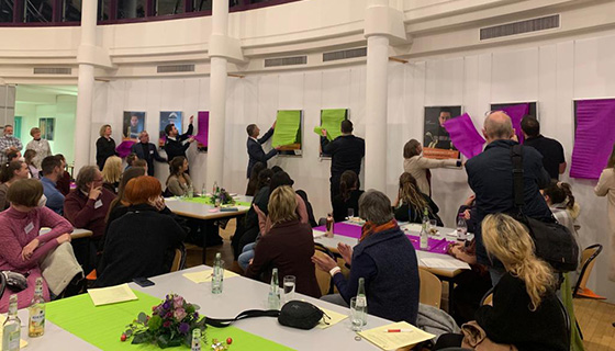 Geleitet durch die professionelle Moderation von Axel Flinker, „agonda. Agentur für Dialog und Entwicklung“, kamen über 30 Personen aus dem Rheingau-Taunus-Kreis zusammen, die mit dem Thema Gewalt in Paarbeziehungen fachlich befasst sind: Neben Vertreter:innen des etablierten Netzwerks „Runder Tisch Häuslicher Gewalt“ nahmen auch jene teil, die Funktionen innehaben, die sie zu wichtigen Kooperationspartner:innen machen, u.a. Schulsoziarbeit, Frühe Hilfen und Jobcenter.